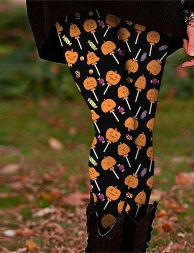 Жен. Брюки Леггинсы Уютные леггинсы Уличный стиль На каждый день Полная длина ЗавышеннаяPantsHalloween Тыква Эластичная талия С принтом Воздухопроницаемость Удобный Эластичная