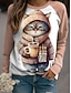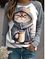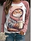 Новогодняя тематика Жен. Футболка Графика Животное Кот Мода На каждый день Длинный рукав Вырез под горло Круглый вырез Обычные топы Повседневные выходные С принтом Синий Розовый Лиловый Зеленый