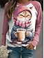 Жен. Pullover Графика Кот На каждый день Длинный рукав Вырез под горло Обычные топы Повседневные Светло-розовый Темно-розовый Оранжевый Серый Осень Зима