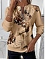 Жен. Блуза Цветочный принт Графика Богемия Повседневные Этнический Рукав 3/4 Вырез под горло Вырез лодочкой Обычные топы Повседневные Праздники Одежда для отпуска С принтом