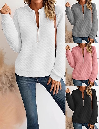 Жен. Блуза Сплошной цвет Повседневные Стиль На каждый день Длинный рукав Вырез под горло Обычные топы Офис Повседневные Праздники Четверть молния Черный Белый Розовый Серый Весна Осень Зима