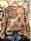 женская туника стильный повседневный принт длинный рукав обычные топы v-образный вырез повседневный светло-коричневый весна осень
