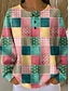 Жен. Пуловер Толстовка Графика В клетку Уличный стиль На каждый день Длинный рукав Вырез под горло Обычные топы Для улицы На каждый день С принтом Синий Розовый Лиловый Оранжевый Зеленый