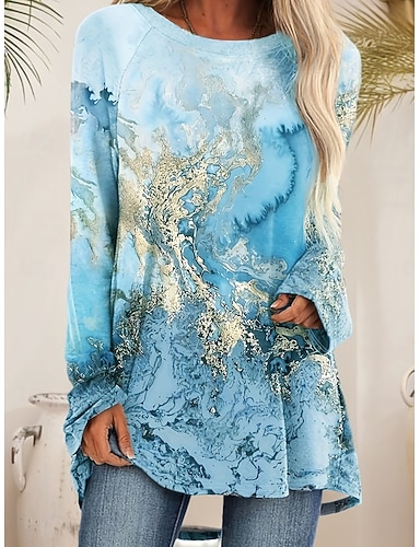 Женская футболка с длинными рукавами с круглым вырезом длинная туника повседневная принт обычные топы ежедневные розовый весна осень предосень