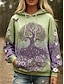 Жен. Футболка Графика Геометрия Винтаж Стиль На каждый день Длинный рукав Вырез под горло Длинные топы Повседневные С принтом Синий Лиловый Зеленый Осень Зима