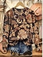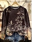 Жен. Толстовки Цветочный принт Графика Винтаж На каждый день Длинный рукав Вырез под горло Обычные топы Для улицы На каждый день Повседневные С принтом Желтый Красный Коричневый Цвет хаки