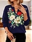 Жен. Рубашка Блуза Цветочный принт Элегантный стиль Стиль Рукав 3/4 V-образный вырез Обычные топы Офис Повседневные галстук спереди Нарядная Туника Ассиметричный Темно синий Лето Весна Осень