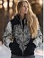 Жен. Толстовки на молнии Цветочный принт Графика Этно Мода На каждый день Длинный рукав Капюшон Обычные топы Для улицы На каждый день Повседневные Молния Карман С принтом