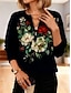 Женская блуза Цветочная Стильная Повседневная Длинный рукав V-образный вырез Обычные Топы Повседневный принт Черная Красная Хаки Темно-серая Лето Весна Осень