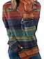 Жен. Рубашка Графика Геометрический принт На каждый день Богемный Длинный рукав Рубашечный воротник Обычные топы Повседневные На выход Наряды для вечеринок Пэчворк Пуговицы С принтом Цвет радуги