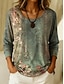 Женская блузка с вырезом V многослойные рюши цветочный графический узор богемная винтажная повседневная рукав 3/4 обычные топы для повседневного отдыха отпуска принт белый синий пыльно-голубой