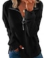 Жен. Пуловер Толстовка Полотняное плетение Элегантный стиль Теплый Мода Длинный рукав Лацкан Обычные топы Дом Офис Для улицы Пэчворк Четверть молния Синий Небесно-голубой Черный Желтый Красный