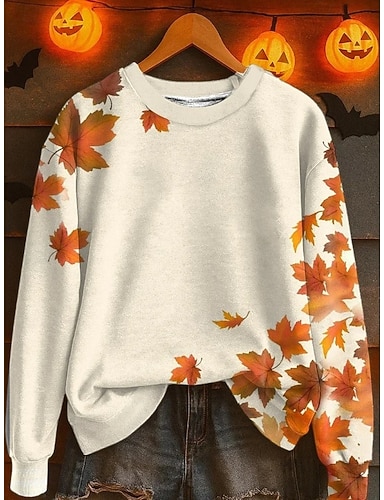 Жен. Пуловер Толстовка Цветочный принт Графика Мода На каждый день Длинный рукав Вырез под горло Обычные топы Для улицы На каждый день Повседневные С принтом Черный Оранжевый Бежевый Осень Зима