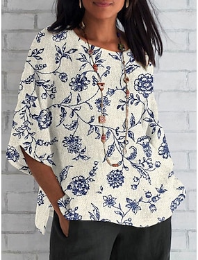 Жен. Рубашка Цветочный принт Повседневные На каждый день Рукав 3/4 Вырез под горло Обычные топы Повседневные Праздники С принтом Черный Синий Абрикосовый Лето Весна Осень