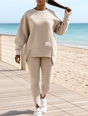 Жен. Штаны Спортивный костюм из двух частей Спортивная одежда негабаритный Однотонный Наборы одежды Осень Черный Синий На открытом воздухе Путешествия Спорт мешковатый Длинный рукав Спорт