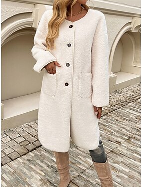 Жен. Зимнее пальто на открытом воздухе Для улицы На каждый день Осень Зима Длинная Пальто Стандартный Сохраняет тепло Дышащий Стиль На каждый день Жакеты Длинный рукав Полотняное плетение С карманами