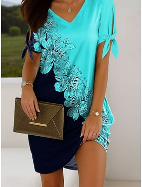 Жен. Мини-платье Повседневное платье Платье-футболка Летнее платье Элегантный стиль Отпуск Винтаж Холодный прием Стандартный Омбре Цветочный принт Графика С короткими рукавами V-образный вырез