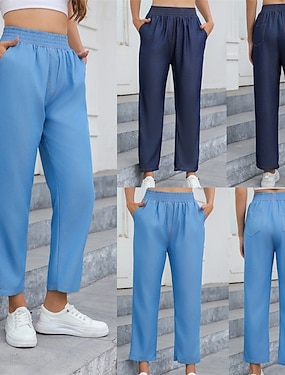 Жен. Джинсы Льняные брюки Брюки Легкие На каждый день Полная длина Со стандартной талией Полотняное плетение Карман Воздухопроницаемость Удобный Неэластичная Дом На каждый день