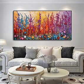 Hang-роспись маслом Ручная роспись Горизонтальная Пейзаж Цветочные мотивы / ботанический Современное Без внутренней части рамки (без рамы)