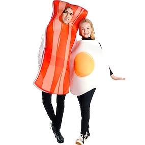 пары яйцо бекон полоска смешные костюмы хэллоуин групповые парные костюмы мужские женские косплей кино косплей костюмы смешной костюм желтый красный трико / комбинезон хэллоуин карнавал маскарад