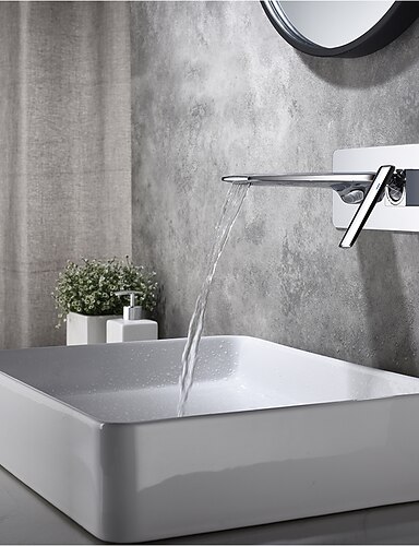настенный смеситель для раковины для ванной комнаты, латунь, краны для водопада, настенный кран с одной ручкой, одно отверстие, шланг для горячей и холодной воды, черный, белый, с гальваническим покрытием