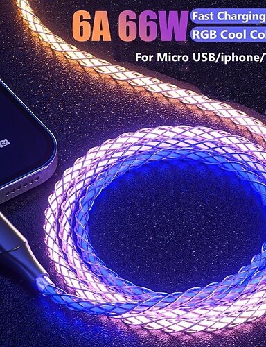 кабель для быстрой зарядки rgb 100w дыхательный свет 66w type c usb c кабель для передачи данных для iphone samsung android micro 30w кабель для быстрой зарядки