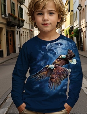 Мальчики 3D Графика Животное Футболка Длинный рукав Весна Осень Мода Классический Дети 4-12 лет Вырез под горло на открытом воздухе Повседневные Стандартный