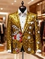 Новогодняя тематика Муж. Графика Пиджак Пальто Удобный Художественный На каждый день Вечерние наряды Повседневные фестиваль 3D печать Пуговицы Наступила зима Острый Длинный рукав Синий Красный Золотой