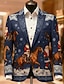 Новогодняя тематика Муж. В снежинку Пиджак Пальто Удобный Дышащий Художественный На каждый день Вечерние наряды Повседневные фестиваль 3D печать Пуговицы Наступила зима Острый Длинный рукав Синий 1