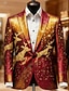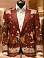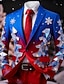 Новогодняя тематика Муж. Пиджак Пальто Удобный Дышащий Художественный На каждый день Вечерние наряды Повседневные фестиваль 3D печать Пуговицы Все сезоны Острый Длинный рукав Красный Синий