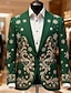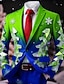 Новогодняя тематика Муж. Пиджак Пальто Удобный Дышащий Художественный На каждый день Вечерние наряды Повседневные фестиваль 3D печать Пуговицы Все сезоны Острый Длинный рукав Красный Синий Зеленый