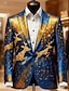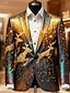 Новогодняя тематика Муж. Графика Пиджак Пальто Удобный Художественный На каждый день Вечерние наряды Повседневные фестиваль 3D печать Пуговицы Наступила зима Острый Длинный рукав Синий Красный Золотой