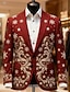 Новогодняя тематика Муж. В снежинку Пиджак Пальто Удобный Художественный На каждый день Вечерние наряды Повседневные фестиваль 3D печать Пуговицы Наступила зима Острый Длинный рукав Красный 1