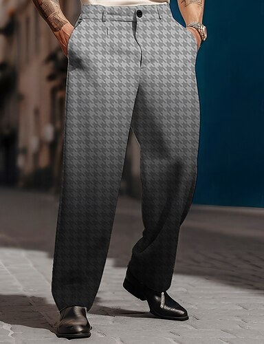 Муж. В клетку Геометрический рисунок Штаны Костюм Нормальная Деловая одежда Свадьба Праздники Подарки ко Дню папы Плоский фронт Прямые брюки Лето Весна Осень 3D печать Черный