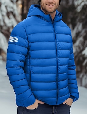 Муж. Американский флаг США Зимнее пальто Пуховик Сохраняет тепло Дожденепроницаемый Легкость На каждый день на открытом воздухе Повседневные Утепленная стеганая куртка с капюшоном Осень Зима Капюшон
