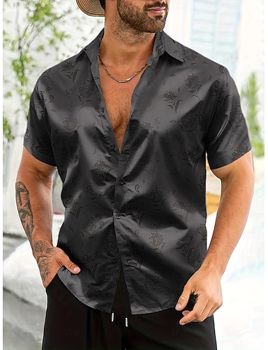 Муж. Рубашка Атласная рубашка Летняя рубашка Одежда для пляжа Кнопка рубашка Повседневная рубашка Черный Красный Зеленый С короткими рукавами Полотняное плетение Воротничок Повседневные Отпуск Одежда