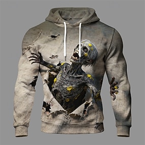 Halloween Муж. Черепа Монстр Толстовка Мода Повседневные Капюшон Отпуск Для вечеринок Уличная одежда Цвет хаки Кулиска Карман Рисунок Осень Зима Дизайнер