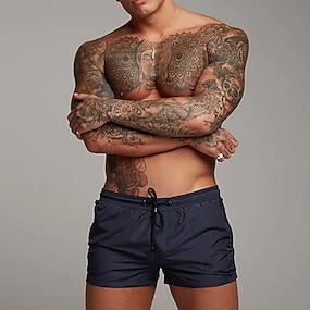 Муж. Пляжные шорты Купальные шорты Обтягивающие длинные шорты Плавки Кулиска Эластичная талия Карман на молнии Сплошной цвет Дышащий Быстровысыхающий Короткие Повседневные Пляж Мода Классический