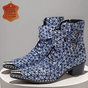 Мужские синие ботильоны с геометрическим принтом – модные ковбойские сапоги для концертов, уличной жизни и ночных вечеринок