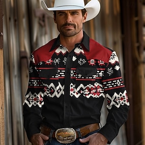 Муж. Ковбой Западная рубашка Кнопка рубашка Ковбойская рубашка Длинный рукав Винтаж Западный на открытом воздухе Повседневные Праздники Весна Осень Зима Отложной Рубашки с воротником 3D печать Черный