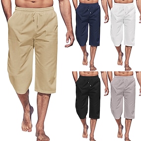 Муж. Шорты Льняные шорты Летние шорты Пляжные шорты Брюки-капри Карман Кулиска Эластичная талия Полотняное плетение Комфорт Дышащий на открытом воздухе Повседневные На выход Мода Уличный стиль
