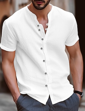 Муж. Рубашка Льняная рубашка Летняя рубашка Одежда для пляжа Рубашка с воротником-стойкой Кнопка рубашка Полотняное плетение Отпуск Повседневные Черный Белый Синий Цвет хаки С короткими рукавами