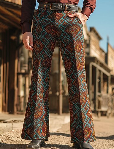 Муж. Геометрический рисунок Этнический Диско Брюки Брюки-клеш 60-х 70-х годов Нормальная Западный Винтаж Ретро на открытом воздухе Отпуск Повседневные Боковые карманы Расклешенные брюки Весна Осень