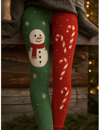 Жен. Леггинсы Отпуск Винтаж Мода Полная длина ЗавышеннаяPantsНовогодняя тематика Графика В снежинку Рождество Рисунок Мягкий Дышащий Эластичность Отпуск Для улицы Повседневные Черно-зеленый Осень Зима