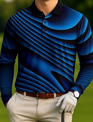 Муж. Градиент геометрический Поло Длинный рукав Футболки поло Лацкан Деловая одежда Одежда для спорта и отдыха На каждый день 3D печать Пуговицы Весна Осень Зима Синий Лиловый Коричневый