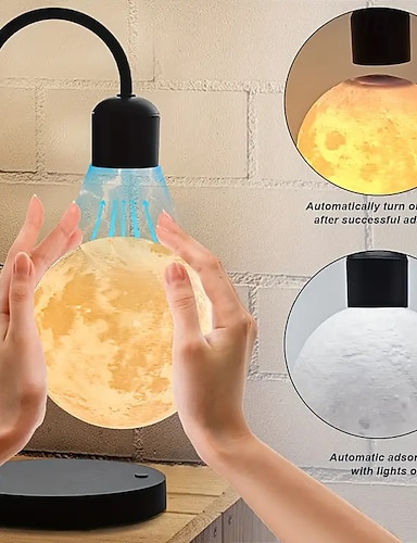 Лампа с магнитной левитацией, настольная лампа, беспроводное зарядное устройство для телефона, 15 Вт, 3-цветный регулируемый сенсорный 3D-лунный свет, ночник