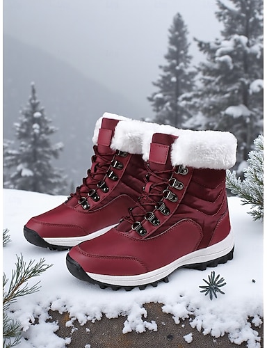 Женские зимние водонепроницаемые ботинки бордового цвета с подкладкой из искусственного меха, теплые ботинки для походов на открытом воздухе и холодной погоды на шнуровке