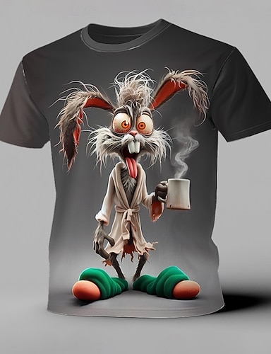 Муж. Животное Кролик Смешной Футболка С короткими рукавами Футболка 3D печать Вырез под горло Рубашка преувеличены Оригинальный рисунок Для вечеринок Праздники Лиловый Зеленый Серый Лето Весна Одежда