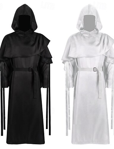 Ретро Средневековый Эпоха возрождения Халат плащ с капюшоном Волшебники Монах Маскарадный костюм Муж. фантазия Хэллоуин Карнавал Выступление РИЖД Рен Фэйр Взрослые Пояс Костюм