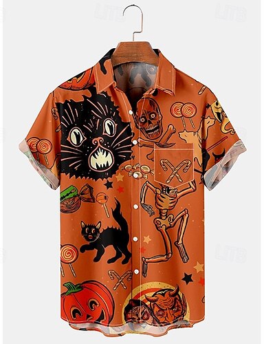 Halloween Муж. Гримаса Лицо Фонаря Рубашка Летняя рубашка Повседневная рубашка Короткие рукава Ужас Отпуск На каждый день Тематическая вечеринка Весна лето Лацкан С принтом